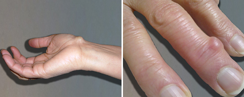 Το γάγγλιο είναι η πιο κοινή μάζα ή όγκος στο χέρι. Σπανιότερα εμφανίζεται και στον άκρο πόδα. Δεν είναι καρκινικές και στις περισσότερες περιπτώσεις , είναι αβλαβείς . Εμφανίζονται σε διάφορα σημεία, αλλά πιο συχνά αναπτύσσονται στη ραχιαία επιφάνεια της πηχεοκαρπικής άρθρωσης. Αυτές οι γεμάτες με υγρό κύστες μπορεί να εμφανιστούν γρήγορα , να εξαφανιστούν και να αλλάξουν σε μέγεθος .Οι περισσότερες γαγγλιακές κύστεις δεν απαιτούν θεραπεία. Ωστόσο, αν η κύστη είναι επώδυνη, δυσχεραίνει την κίνηση και τη χρήση του χεριού ή έχει αντιαισθητική εμφάνιση μπορεί να αντιμετωπιστεί.