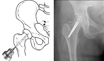 Πρόκειται για τη δημιουργία οπών στη μηριαία κεφαλή με σκοπό την ελάττωση της ενδοστικής πίεσης και τη δημιουργία χώρου για την ανάπτυξη νέων αιμοφόρων αγγείων.