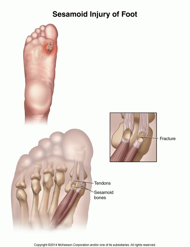 Μία συχνή πάθηση είναι η σησαμοειδίτιδα. Πρόκειται ουσιαστικά για μία μορφή τενοντίτιδας στους τένοντες γύρω από τα σησαμοειδή οστά και το σησαμοειδές σύμπλεγμα. Είναι συχνή στους δρομείς και τους χορευτές.